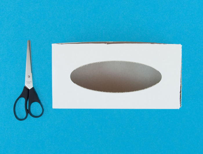 Carefully cut open and flatten the empty tissue boxes. Print the bunny template on paper and cut out. Then use the template to draw and cut out 10 cardboard bunnies.