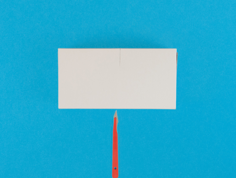 First, make the house. To do this, get an adult to carefully cut the first facial tissue box in half with a craft knife and set one half aside.