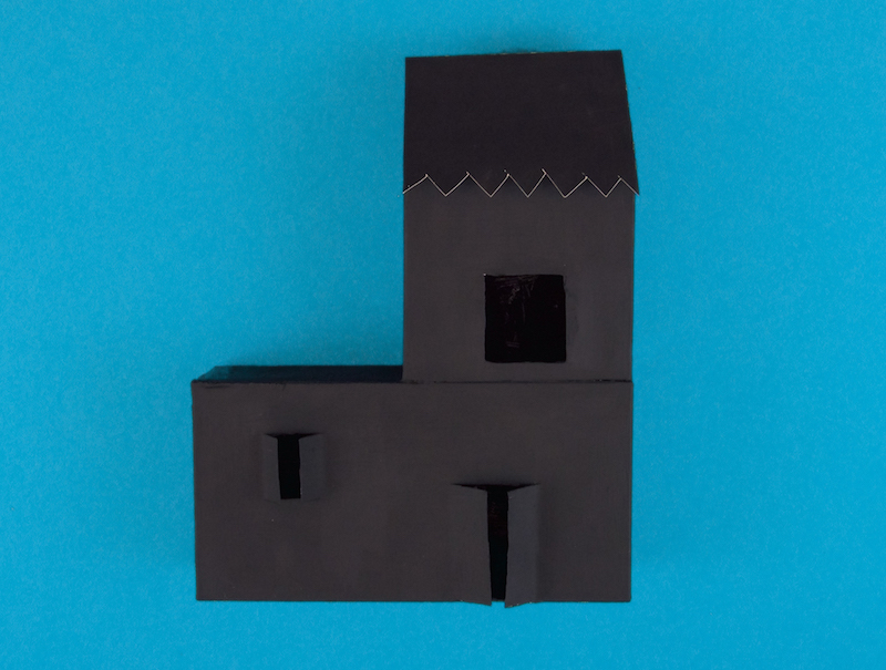 Paint the roof black and when it’s dry fold it in half and glue to the house.