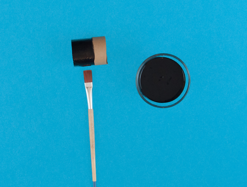 First make the spiders’ bodies. Get an adult to carefully cut the toilet roll tube in half. Paint each section black and then leave it to dry.