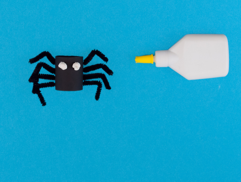 Tear the facial tissue into strips and scrunch into two small eyeballs. Glue them to the front of the spider.