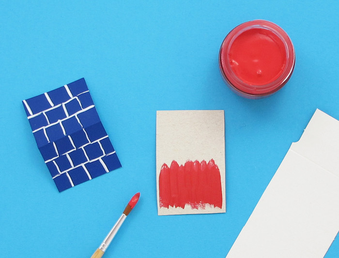 Roll up some of the leftover card into mini ‘chimneys’ and stuff with some scrunched soft tissue to create the illusion of smoke. Glue to some of the roof-less buildings.
