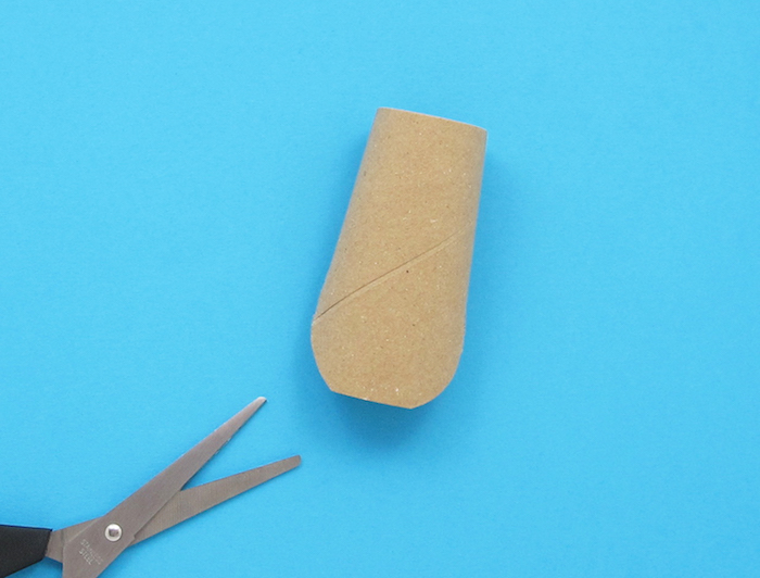 Start by making the fish’s body. Flatten one end of the toilet roll tube and get an adult to cut off the corners.